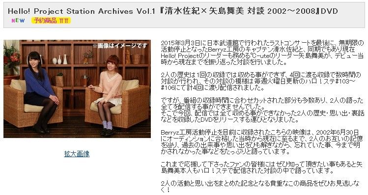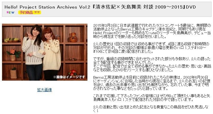 2015年03月31日 【4/19締切】清水佐紀×矢島舞美 対談DVD予約開始 http://www.e-lineup.com/shopdetail/000000005374/http://www.e-lineup.com/shopdetail/000000005375/続きを読む